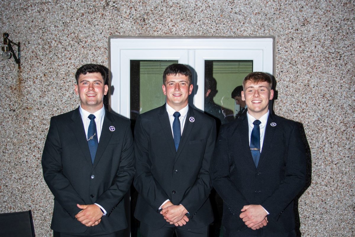 TOP TRIO: Ewan Patterson with his Right-hand Man Bailey Donaldson and Left-hand Man Christopher Tait beam for the camera after Ewan’s election as 2025 Cornet