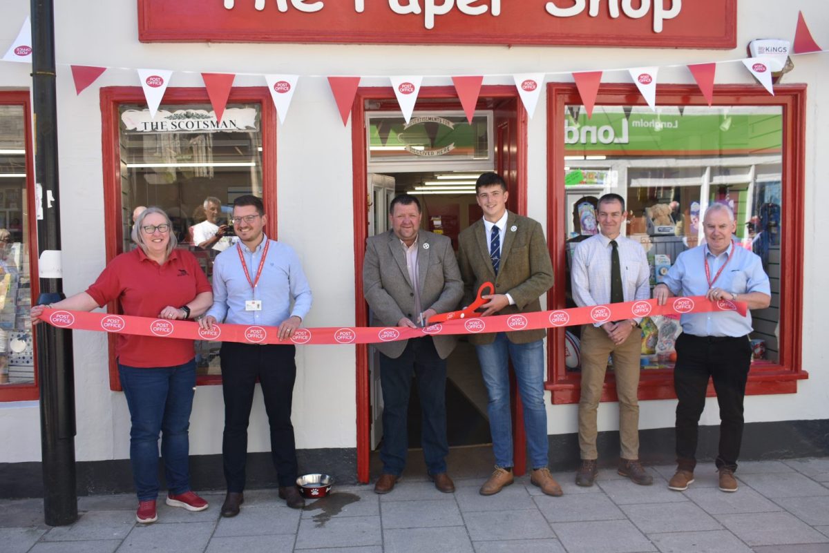 In what was a pleasant little ceremony, Langholm’s new Post Office, located in the Paper Shop, opened its doors to the public.